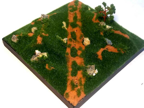 Виньетка на деревянной рамке для размещения моделей в масштабе 1:72, 1:100 и подобных. Материал: электростатический флок, песок, камень-змеевик, цветные присыпки. Модель на фото в масштабе 1:100 - для примера и в комплект не входит