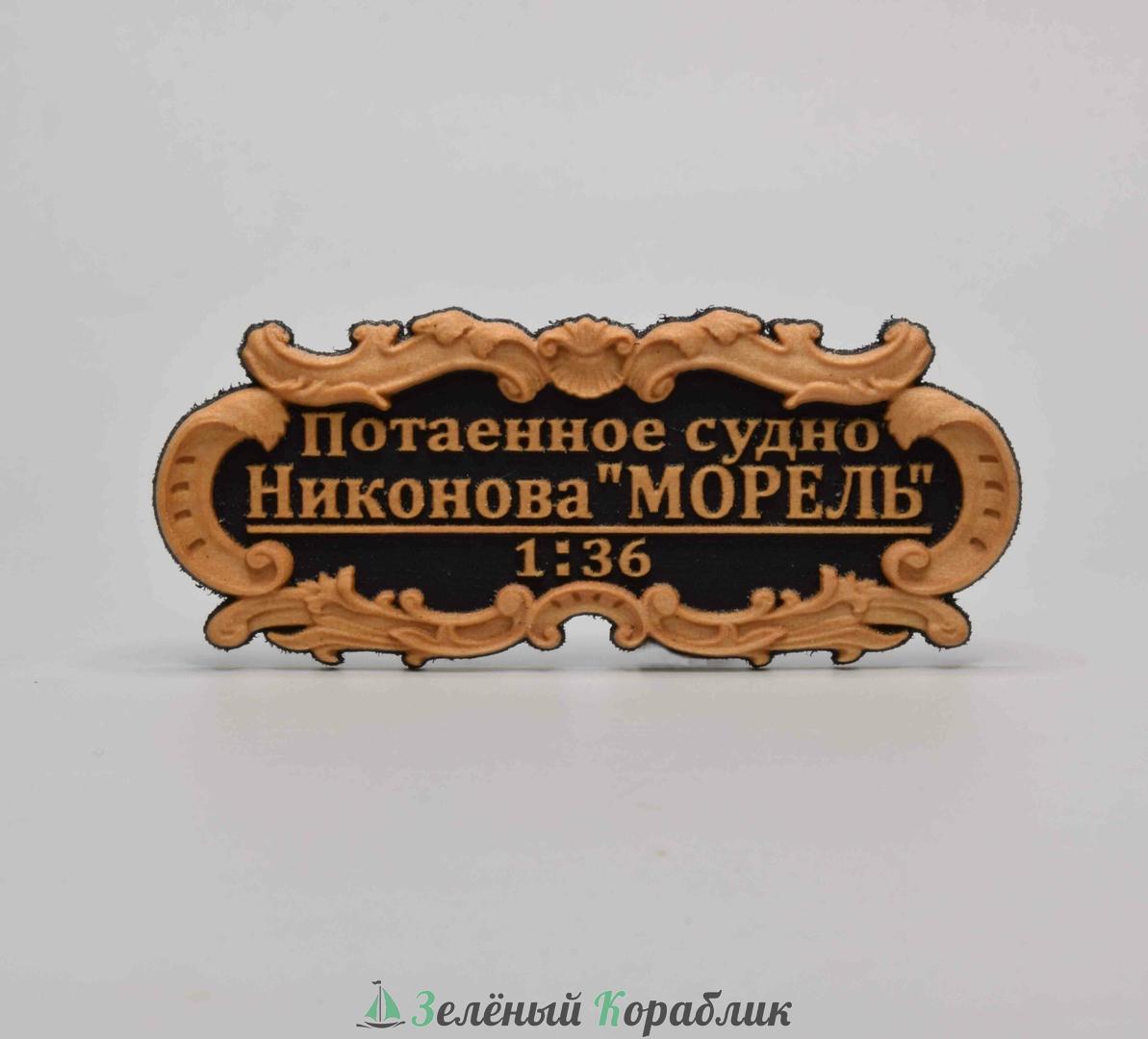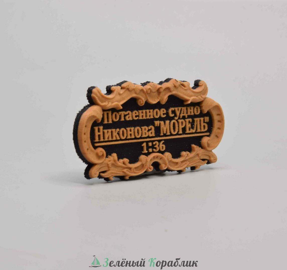 Табличка «Потаенное судно Никонова „Морель“», 55×25 мм, чёрная