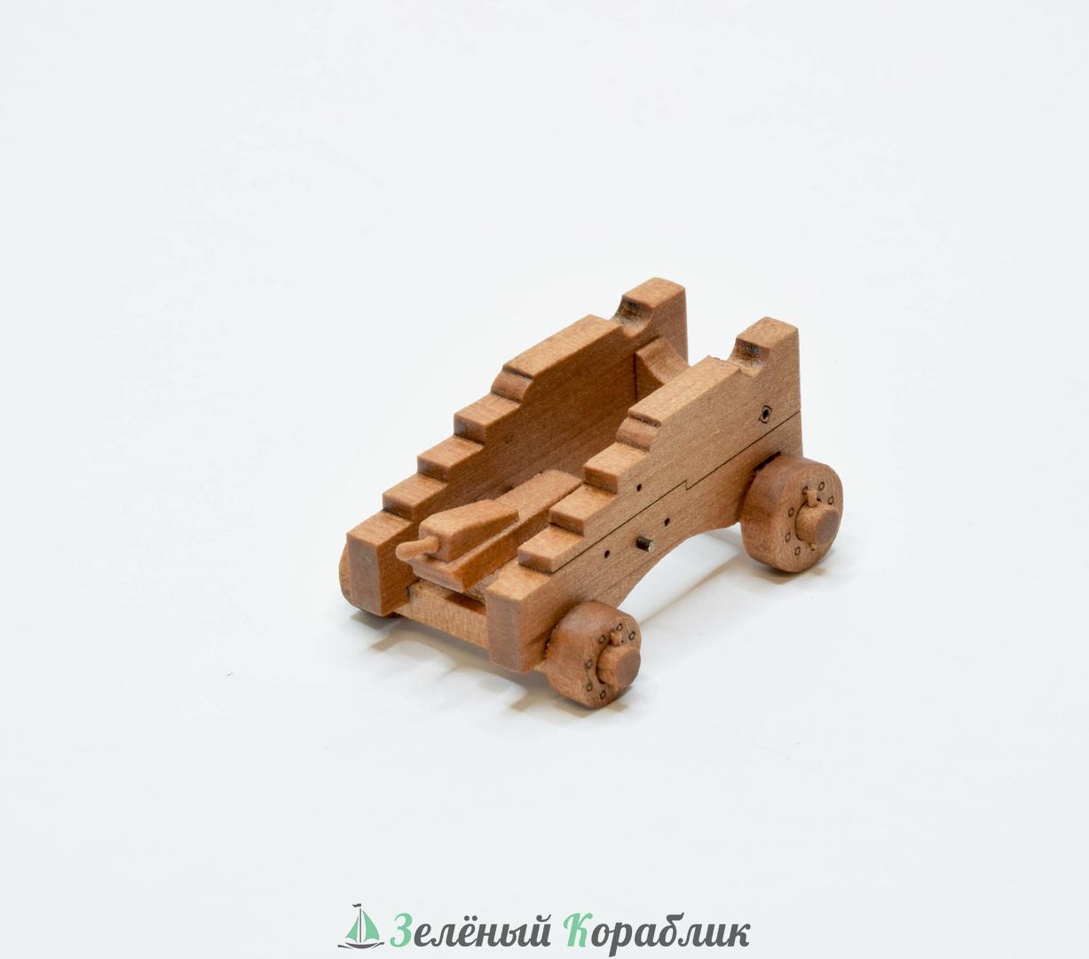 Сборная модель станка для пушки второй половины XVIII века. Масштаб: 1:72 Размер: 16,5х13х8 мм Материал: Груша Выполнена по архивным чертежам. Набор для самостоятельной сборки двух станков состоит из пластины груши толщиной 1,5 мм с вырезанными лазером деталями. Высочайшая детализация и легкая сборка. Рекомендуется устанавливать пушку с длиной ствола ~29–31 мм.
